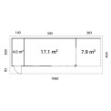 | Ārējais izmērs, m (garums, platums) | 10,38x3.00 |