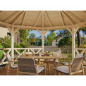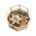 | Apraksts | Koka kosntrukcijas ir izgatavotas no līmēta koka, kas piešķir papildus izturību un ilgmūžību. Lapenes grīda tiek veidota atbilstoši klienta vēlmēm - tā var būt izgatavota no terases dēļiem vai kāda cita materiāla. |