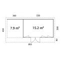 | Ārējais izmērs, m (garums, platums) | 8,33x3,0 |
