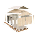 Šo brīvdienu māju ir iespējams siltināt un pielāgot vissezonas izmantošanai. Tās montāža ir viegla un vienkārša, jo konstrukcijas paneļi jau sagatavoti ērtai to montāžai