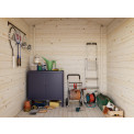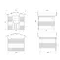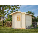 | Apraksts | 3.8 m2, 2x2m dārza mājiņa. Dubultās spundes guļbūves konstrukcija. Stiklotas durvis. Priekējā nojume: 30cm Sānu sienas augstums: 190cm kopējais augstums: 222 cm Lietojamā platība: 5.7m2 Ietilpība: 11.9m3 Jumta slīpums 16.3 grādi |