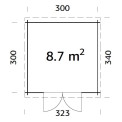 | Apraksts | 8.7 m2, 3x3m šķūnītis. vienas divviru stiklotas durvis. Spundēta guļbūves konstrukcija. Mājas apkārtmērs: 3.2x3.2m. Aizmugures sienas augstums:199cm. Lietojamā platība: 8.7m2. Ietilpība: 17.8m3. Jumta slīpums: 2.2 grādi. |