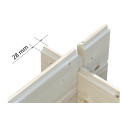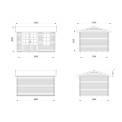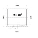 | Apraksts | - 9.4 m2, - 3.8x2.9m - Stiklots vienviru logs 86x55 cm - Divviru durvis 139x168 cm - Sienas augstums: 211cm. - Jumta centra augstums 251 cm - Ietilpība: 21.6m3. - Jumta slīpums: 16.8 grādi. |