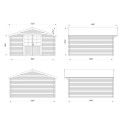 | Apraksts | - 13.9 m2, - 4.0x4.0m - Divviru durvis 151x175 cm - Sienas augstums: 185cm. - Jumta centra augstums 245 cm - Ietilpība: 29.8m3. - Jumta slīpums: 18.6 grādi. |