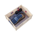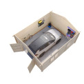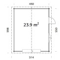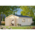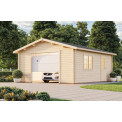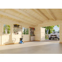 | Apraksts | 24.75 m2, 4.5x5.5m garāža. Dubultās spundes guļbūves konstrukcija. Stiklots divviru logs sānos - 1290x990 mm Stiklotas vienviru durvis sānos - 835x1780 mm Sienas biezums 44mm. Kores augstums 2.79m. Sānu malas augstums: 2.16m. Izmantojamā platība: 23.8m2. Ietilpība: 59m3. Jumta laukums: 31.7m2. Jumta slīpums: 15.7 grādi. |