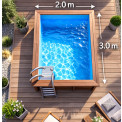 | Apraksts | Baseins paredzēts montāžai uz cietas, stabilas virsmas - piemēram bruģa vai erases Piedāvājam baseina montāžu visā Latvijā. Montāža iespējama uz koka terases, veidojot rāmi, skrūvpāļus Ieteicamais minimālais terases izmērs 4x3,0m |
