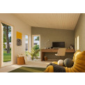 | Детали | Mājiņas sienas izgatavotas no gataviem paneļiem, kuri sastāv no 18 mm bieza apšuvuma dēļa un 70 mm siltuma izolācijas. Grīdas paneļi izgatavoti ar pretvēja izolāciju. |