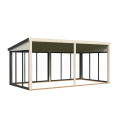 Детали | Беседка с деревянных панелей. В комплекте простые окна и двери с стеклом 4мм. |