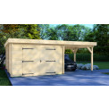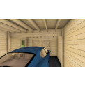 | Детали | Просторный гараж 380x570 cm, 19m2 толщина стенки 44mm Возможно комплектовать деревянными воротами (225x194 cm)163 LVL, а также подъемными металлическими воротами (222x190 cm) 323 LVL ar PVN |