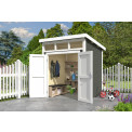 | Description | Ready-made wall elements with wind protection plastic! Trendy look! Fine-sawn cladding. OPTIONAL: Roofing felt: 3 rolls, shingles: 6 packs, roofing nails, rain gutters. |