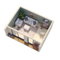 Šo brīvdienu māju ir iespējams siltināt un pielāgot vissezonas izmantošanai. Tās montāža ir viegla un vienkārša, jo konstrukcijas paneļi jau sagatavoti ērtai to montāžai