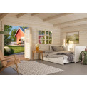 | Description | One two-doored entry. Doors are stored with glass (4mm real glass). Wall height: 205cm. Living area: 19.7m2. Capacity: 46.6 m3. Roof tilt: 14.9 grades. The floor is not included in garden house's set, but it's possible to add wooden floor for extra 351Euros |