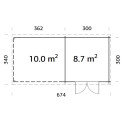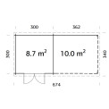 | Description | Inner size of shed 650x300 cm, usable areas 8,7+10,0 m² |