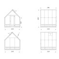 Perimeter 3.0x4.0 m Height 2.20 m Foundation beams 75x75 mm - impregnated. Construction consists of 12mm plywood and solid wood. Price includes wooden constructions, screws, door fittings, laths for fixing the film, film.