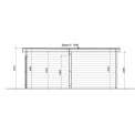 | Description | - Wall thickness 44 mm - 60x80 mm pressure treated foundation joists - 19 mm tongued and grooved roof boards - Incl. roofing felt, roof slats, storm braces, assembly kit and installation manual - 835x1900 mm side doorfrom laminated timer with frosted glass, with cylindrical lock and handles - 2390x1959 mm garage door, with cylindrical lock and handles - 800x534 mm frosted glass window |